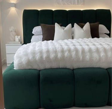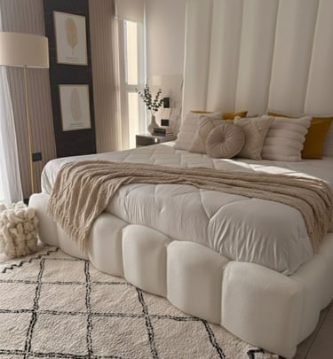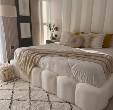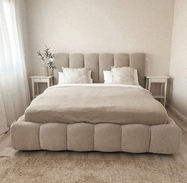 Nuestra cama nube es el producto estrella, tapizada con bastones estilo nube, muy popular entre nuestros clientes.