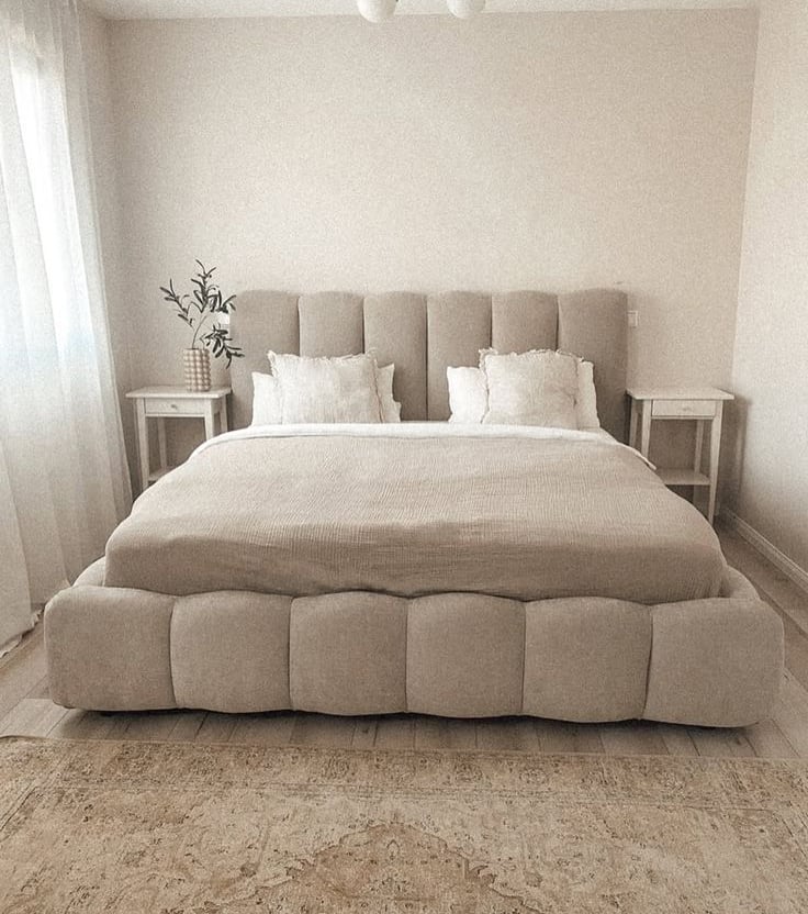 Camas tapizadas y respaldos en variedad de modelos y colores.